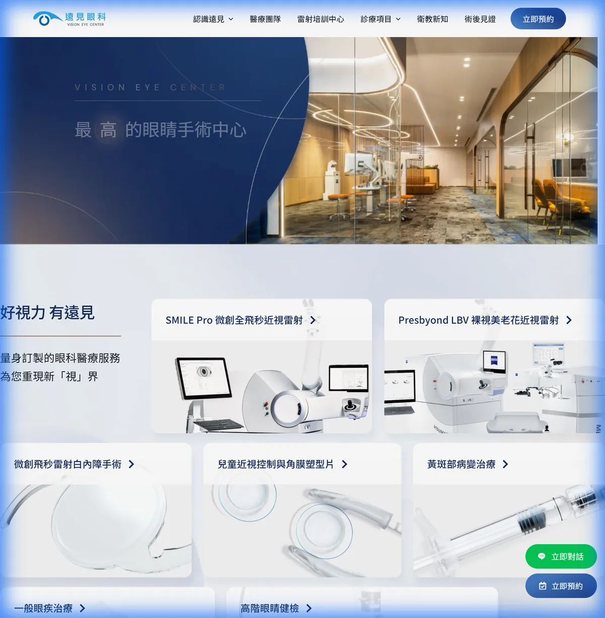 頂級眼科診所網站,展現高端設施與專業醫療團隊。
